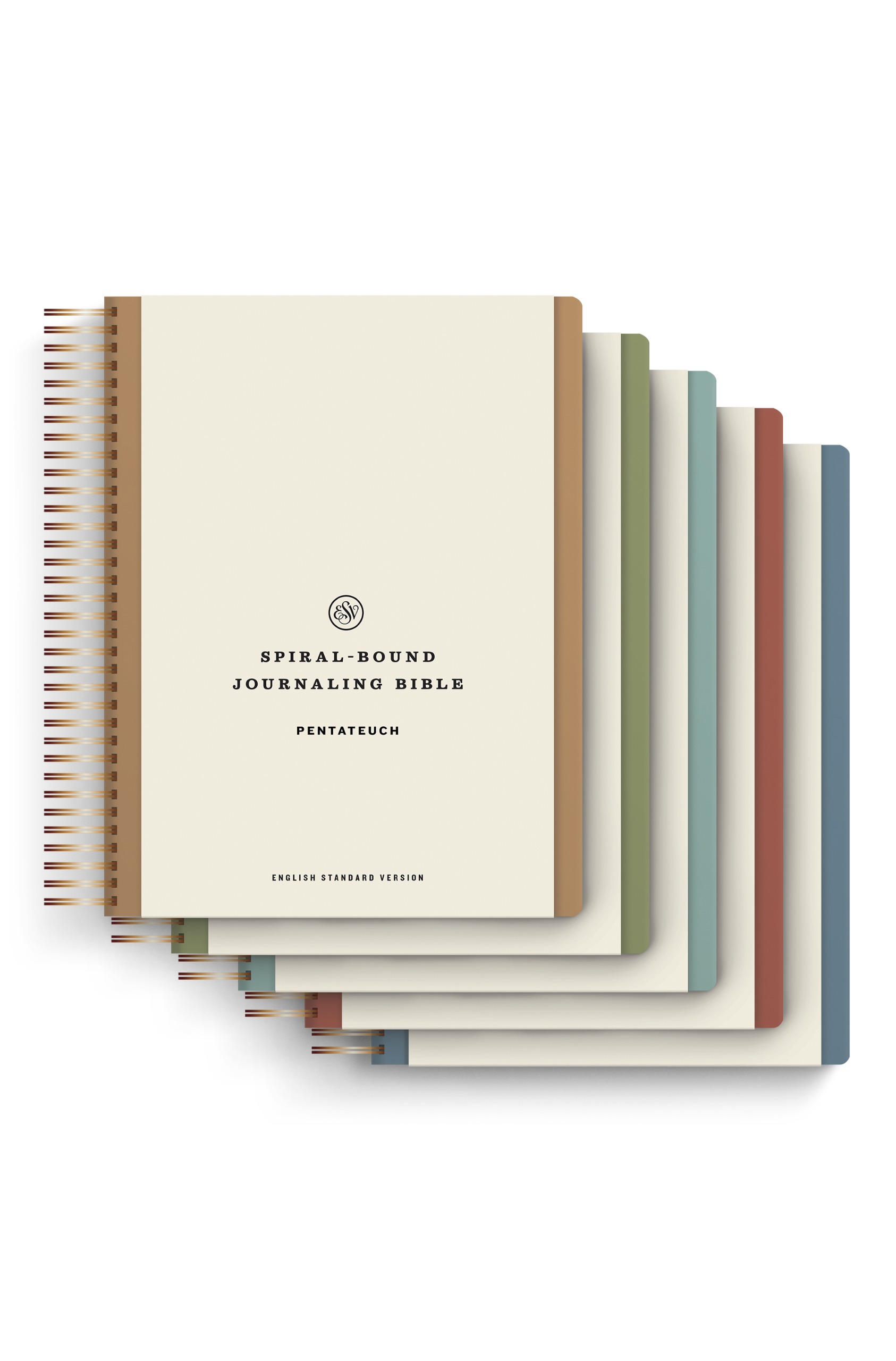 The ESV Spiral-Bound Journaling Bible, Five-Volume Set was created from the ground up to facilitate in-depth note-taking. Divided into 5 individual volumes—Pentateuch; Historical Books; Poetry; Prophets; and New Testament—this set features the complete ESV Bible text in an inviting, easy-to-read layout with generous space for notes. The spiral-bound format lies flat for comfortable reading and writing. Designed to encourage deeper interaction with Scripture, this journaling edition is ideal for recording prayers and reflections.
