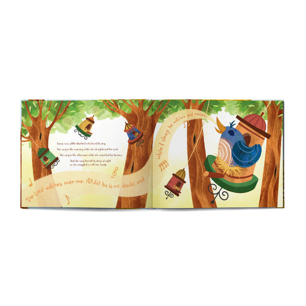Sunny is a little bluebird who loves to sing happy songs until the death of Wren. Sunny's heart hurts because she misses her friend, and she doesn't feel like singing anymore. But Sunny's Mama and forest friends gather around her, teaching her how to share her sadness with God and others. Sunny learns to remember what she can count on about God's love and care and all the love she shared with Wren.